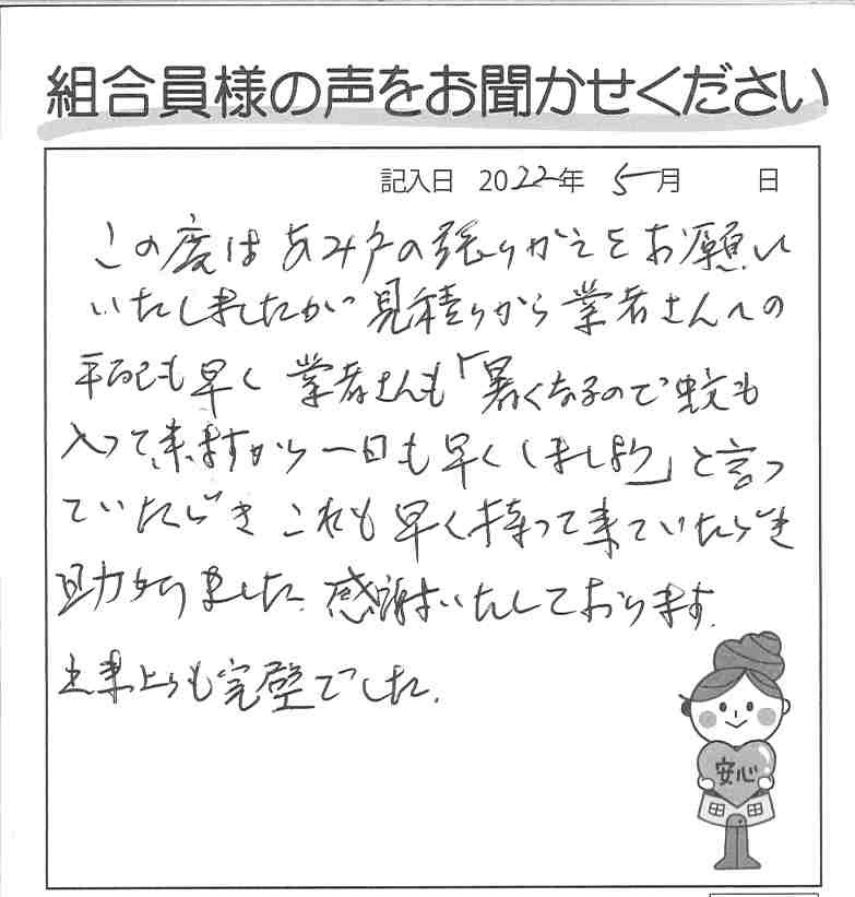 「暑くなるので蚊も入って来ますから一日も早くしましょう」と
