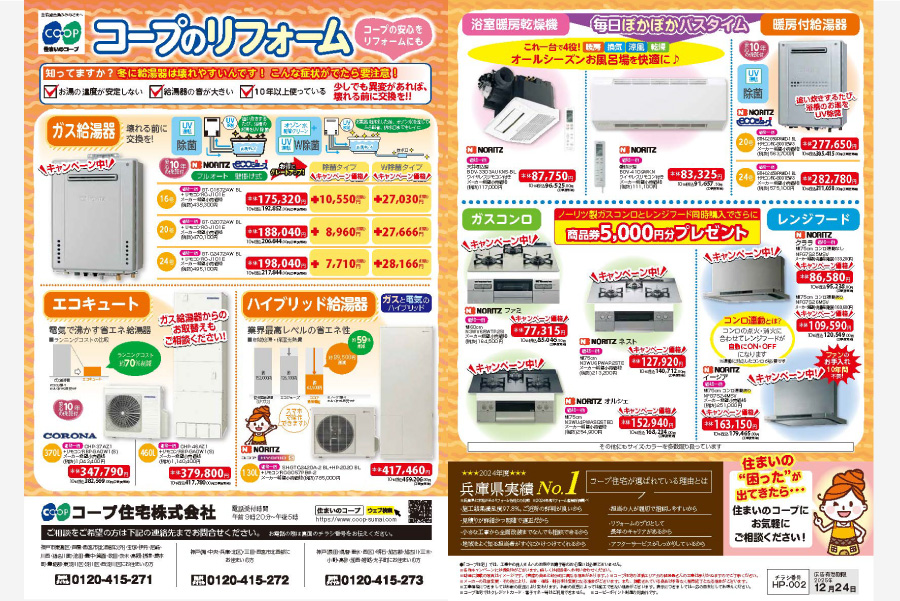 給湯器・ガスコンロキャンペーンチラシ 10/1~12/24