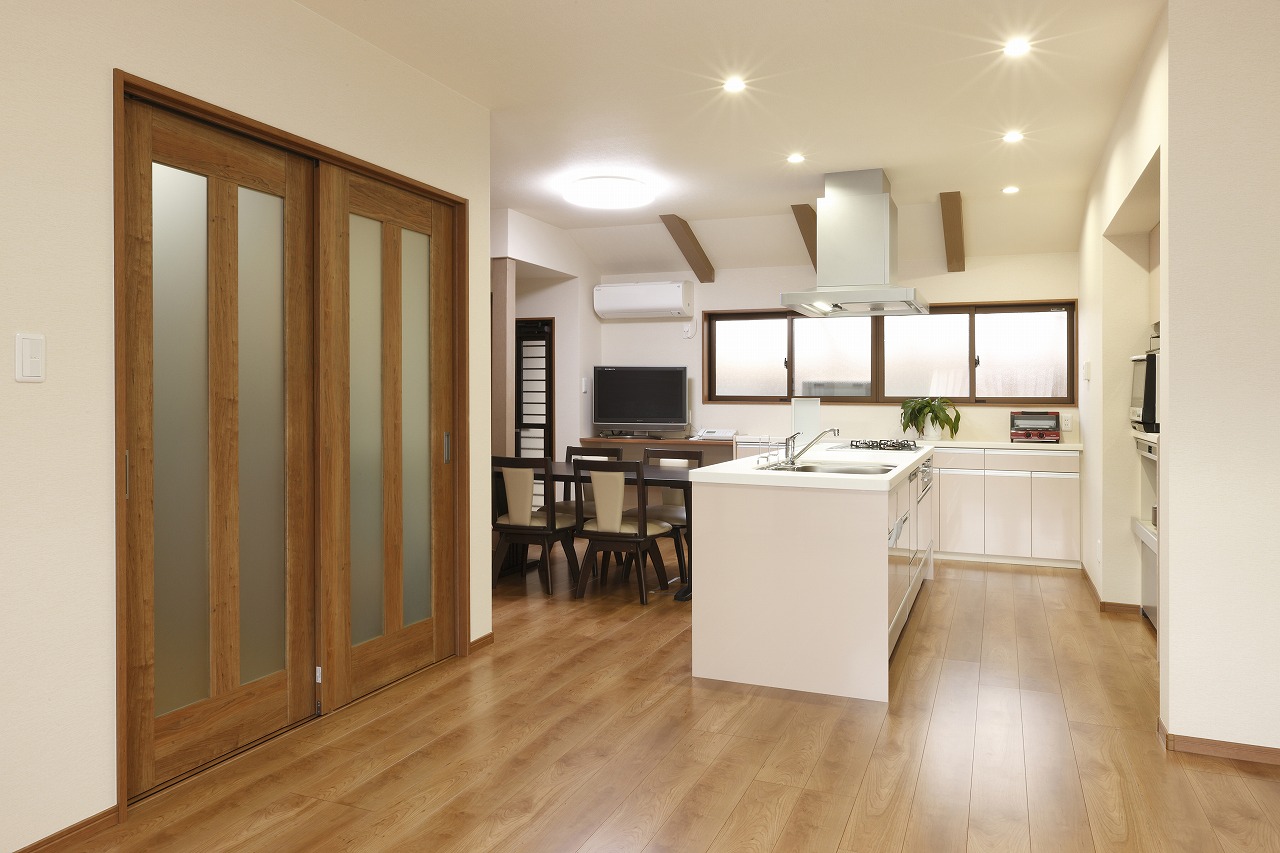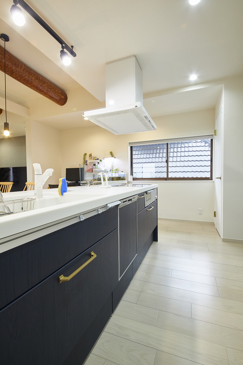 ご提案ポイント元々浴室があったところを改装してダイニングキッチンの一部にされていましたが、有効利用されておらず、そこを含めて既存のダイニングキッチンとリビングを一部屋にし、対面のキッチンにしたいという...