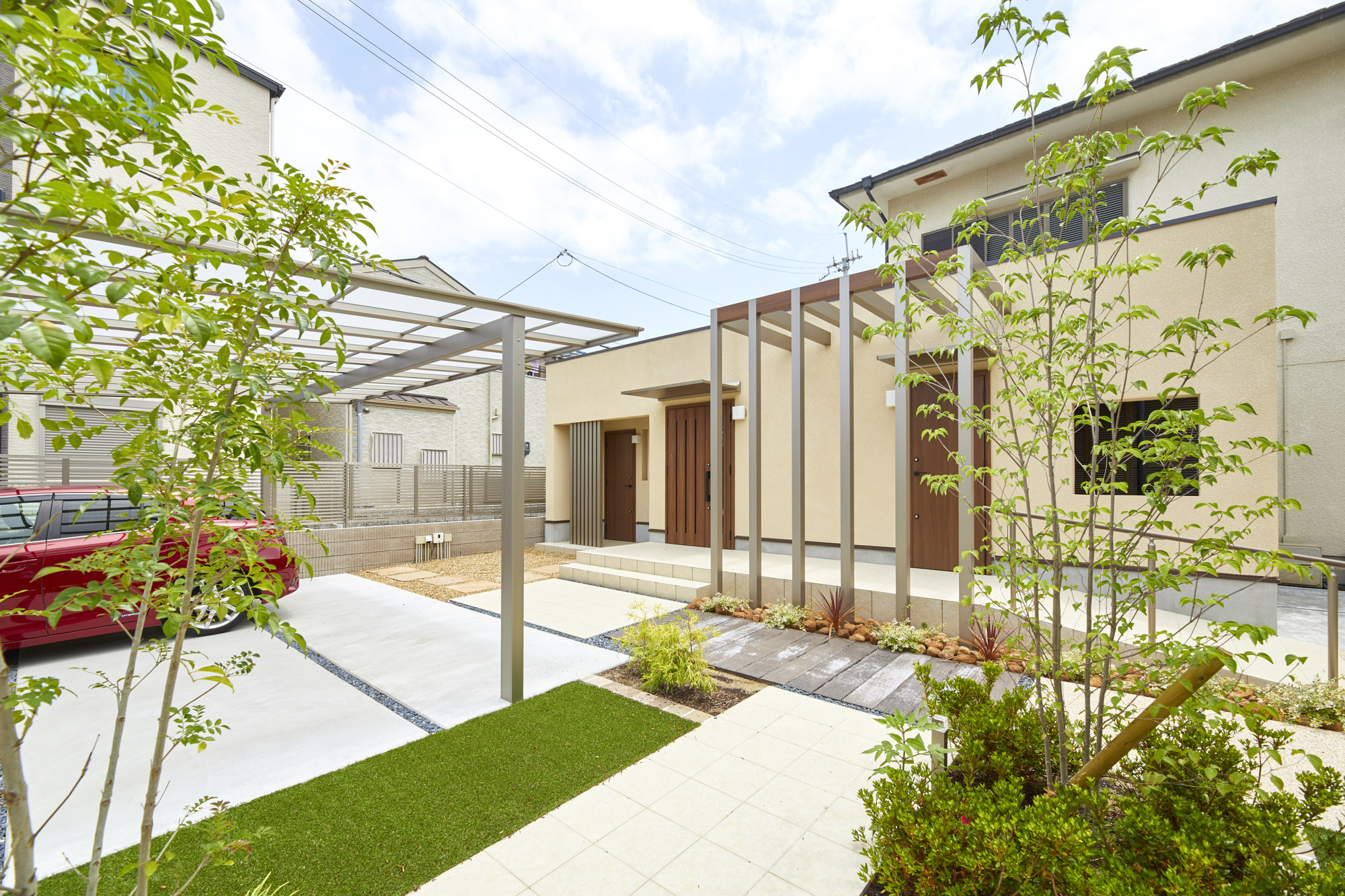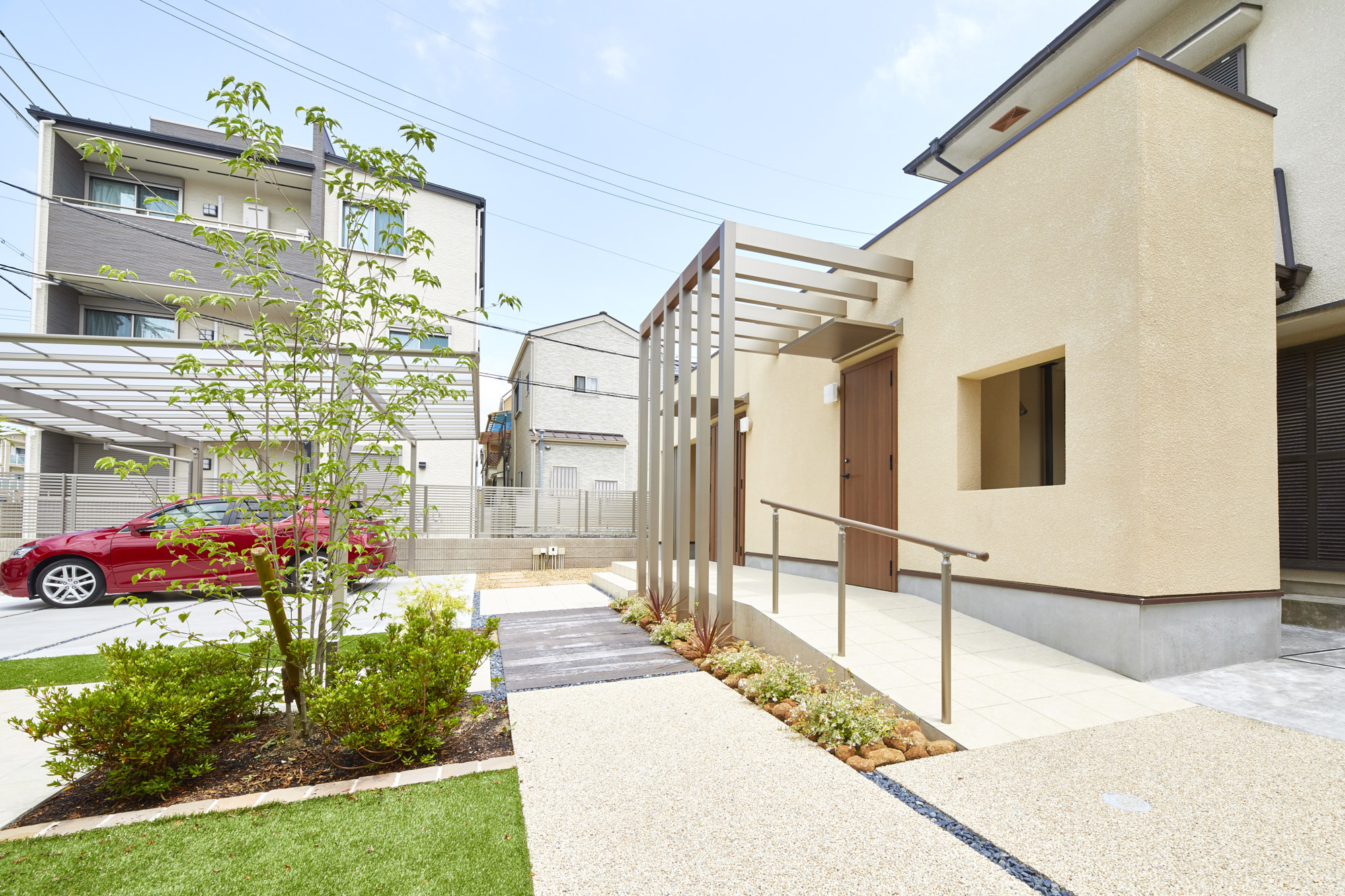リフォームストーリー(きっかけ・ご要望など)病院建物撤去後の更地をキレイにして欲しい、居住建物の玄関位置を設けたいというご要望でした。更地中央にはアプローチを設け、左右には駐車スペース、お庭スペースを...