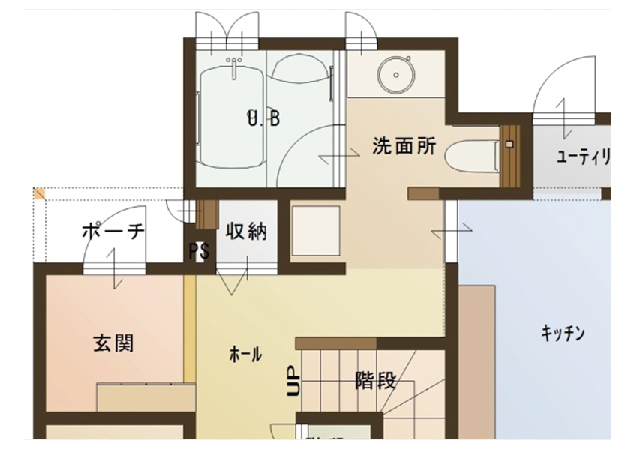 もともとの図面を見ていただければわかるのですが、トイレと、洗面と、台所がドアで仕切られていまして、しかもトイレを出たところの敷居が高かったんです。そこでよくつまづいたんですよ。