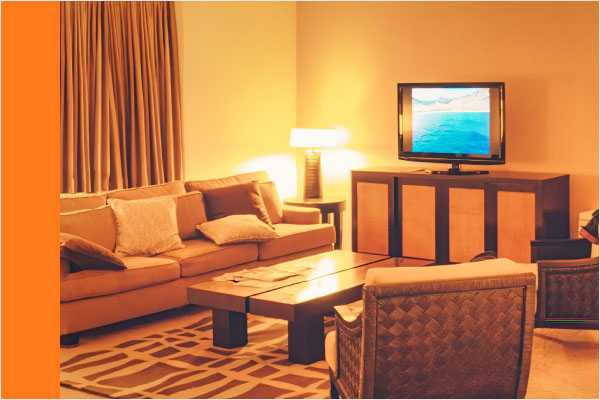 電球色(あたたかみのあるオレンジ色) : 寝室やリビングに最適。リラックスできる落ち着いた空間に。