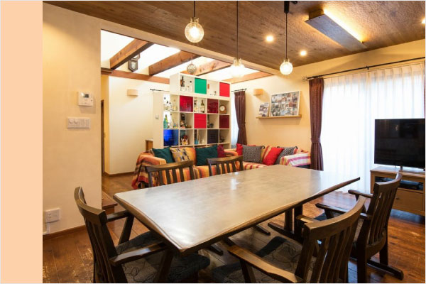 家族が集まる場所なので、シーンに合わせて調光・調色ができる照明が最適。リラックスタイムと来客時で雰囲気を切り替えられます。