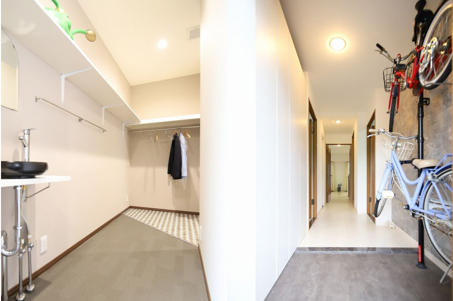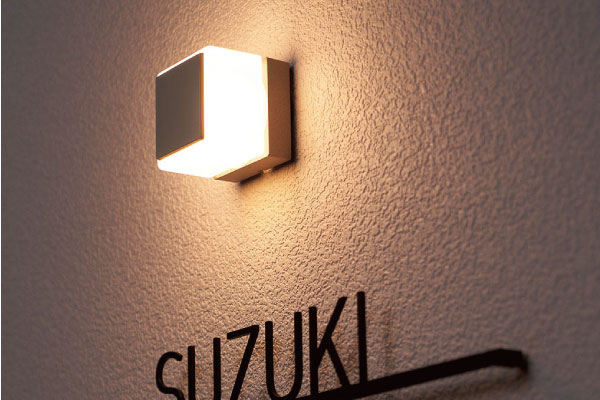 来客を迎える大切な場所。明るすぎず、温かみのある光がおすすめ。人感センサー付きにすれば、省エネかつ利便性もアップ。