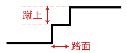 また、大規模なリフォームになってしまいますが、階段勾配を緩やかにすることも可能です。建築基準法上は蹴上げ23cm以下、踏み面15cm以上となっていますが、安全に階段を乗り降りするのであれば、蹴上げは20cm以下、踏み面は25cm以上取ることをおすすめします。