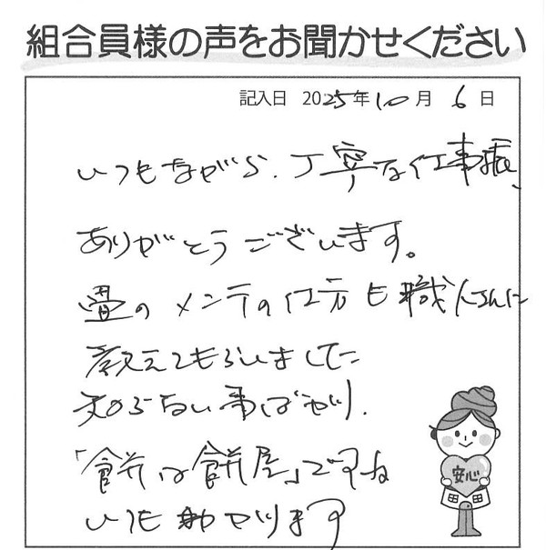 お寄せいただいた工事後のアンケートの中から一部のご感想をご紹介いたします。