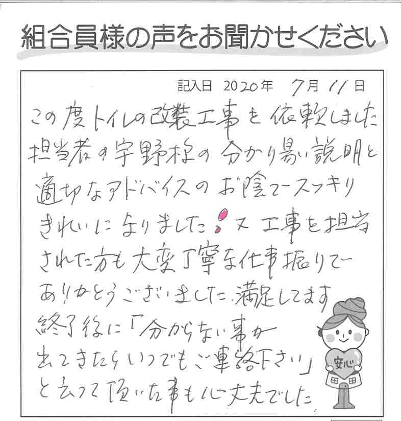 お寄せいただいた工事後のアンケートの中から一部のご感想をご紹介いたします。