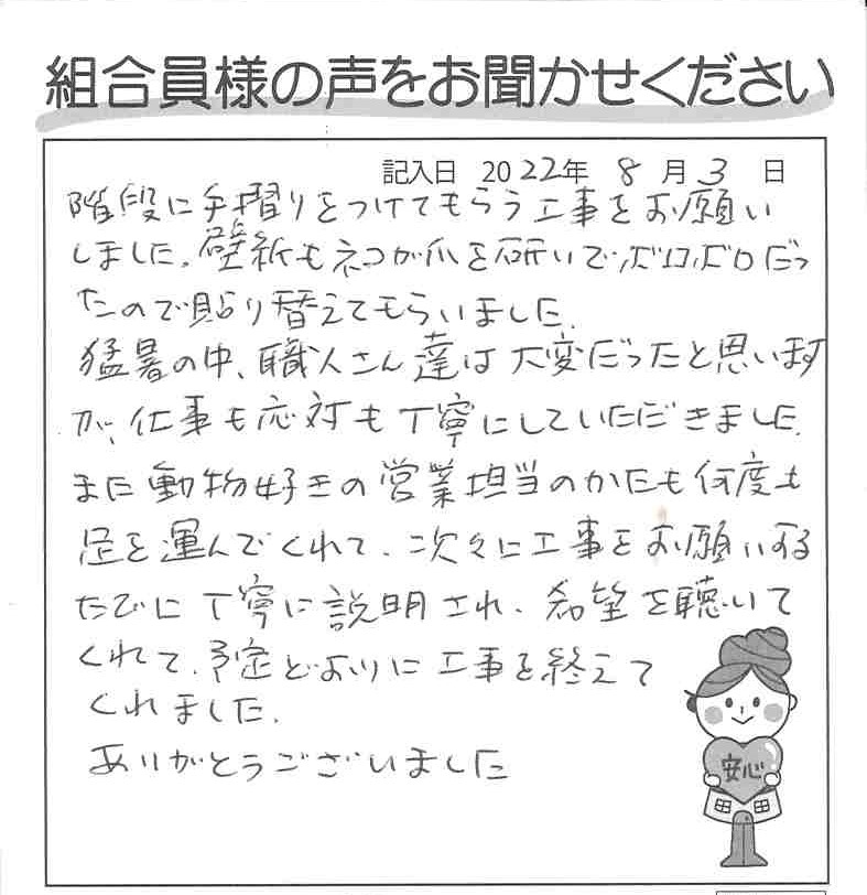 お寄せいただいた工事後のアンケートの中から一部のご感想をご紹介いたします。
