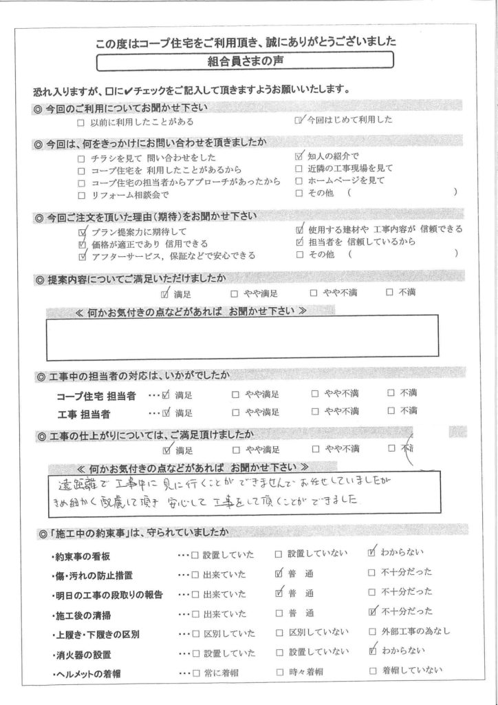 お寄せいただいた工事後のアンケートの中から一部のご感想をご紹介いたします。