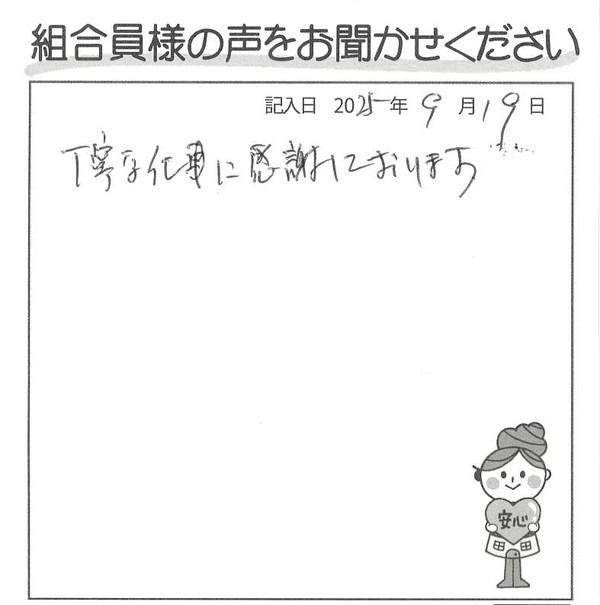 丁寧な仕事に感謝しております。