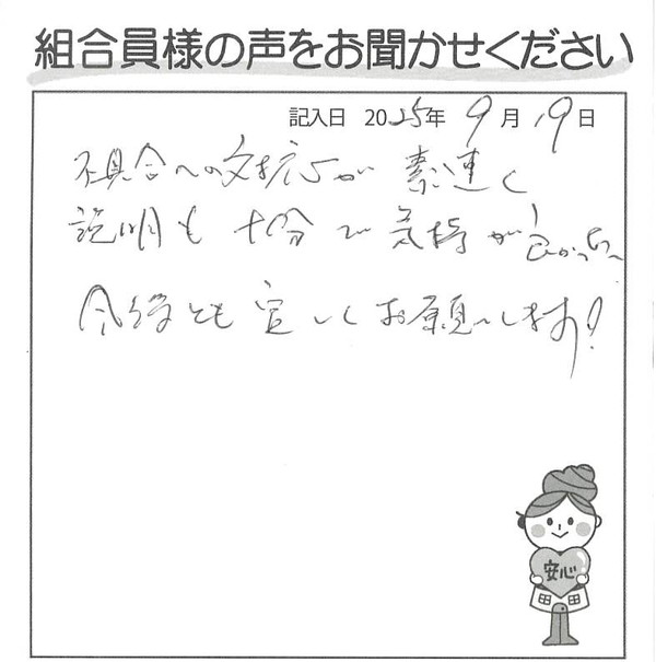 お寄せいただいた工事後のアンケートの中から一部のご感想をご紹介いたします。