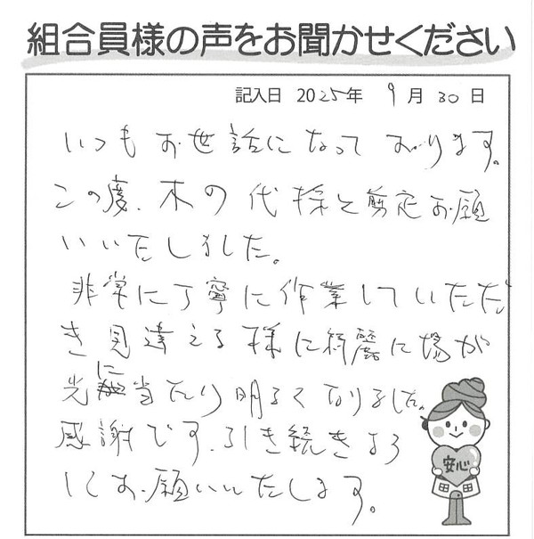 非常に丁寧に作業していただき、見違える様に綺麗に場が光に当たり、明るくなりました。感謝です。