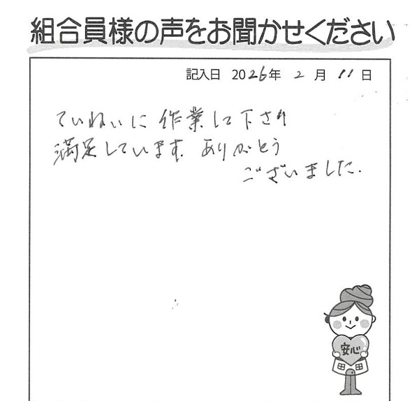 ていねいに作業して下さり、満足しています。ありがとうございました。